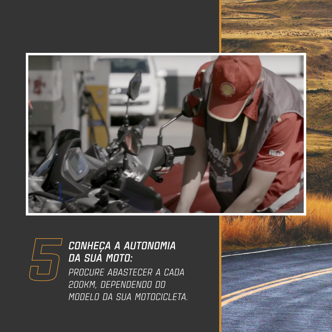 5 - Conheça a autonomia da sua moto: Procure abastecer a cada 200Km, dependendo do modelo da sua motocicleta.